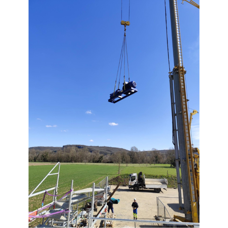 Dans le cadre du projet porté par le Syndicat Mixte des Eaux du Causse de Martel et de la Vallée de la Dordogne (SMECMVD), les équipes ont procédé au grutage et à la mise en place de deux pompes de refoulement d’une capacité de 330 m³/h et d’une Hauteur Manométrique Totale (HMT) de 214 mètres.